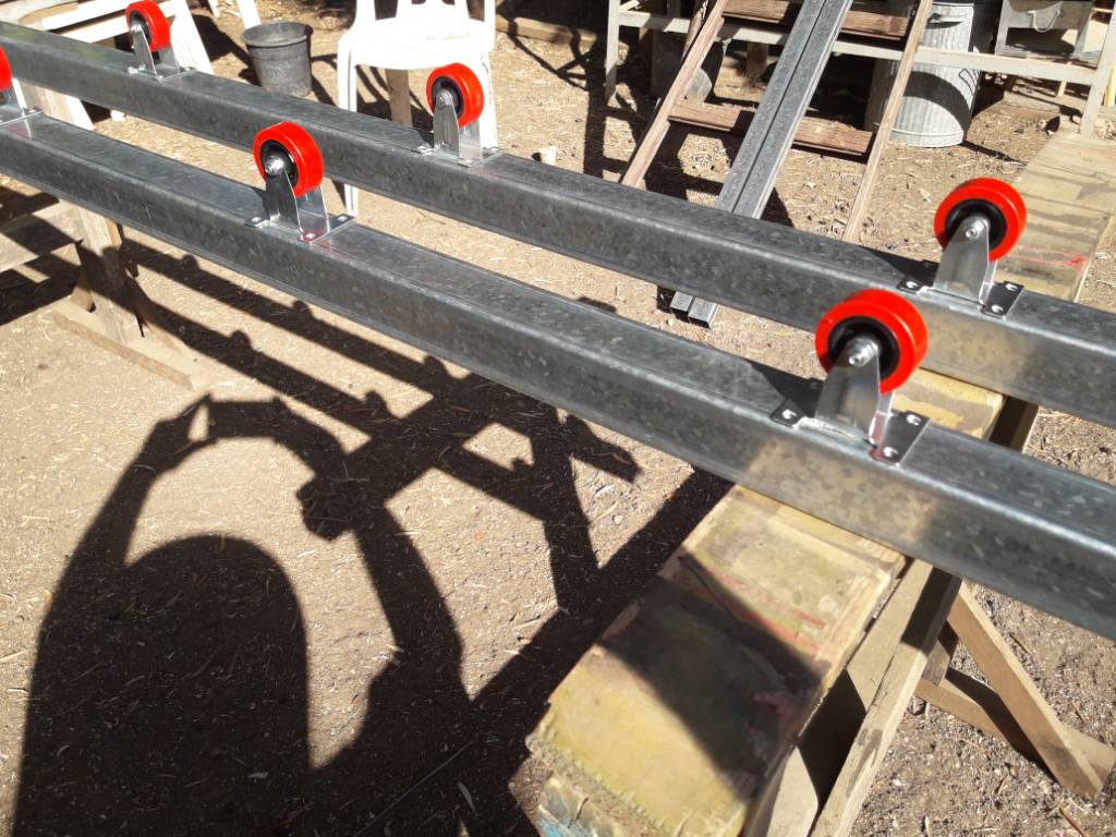 המגירה נבנתה מפרופילים ושאר שאריות מתכת שהיו לי. הדפנות משאריות אלומיניום וברזל. השליפה שלה היא על גלגלים מהום סנטר, כ-10 גלגלים שבנויים למשקל גדול (25 ק"ג לגלגל כמדומני). למגירה יש גם גלגלים מהצד העליון של הפרופיל כך שהיא נעה בתוך מסילה וגם כשהיא כמעט שלופה לגמרי אין צורך לתמוך אותה.