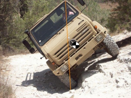 דווקא התמונה שלך מדגימה מצויין את עניין השיפוע צד, בד"כ הנהג יבהל הרבה לפני מגבלת הרכב בשיפוע צד, כיוון שזה מצב מאוד לא מוכר לנהג הרגיל. דווקא הבהלה שעלולה להגיע לפני מגבלת הרכב עלולה לגרום לצרות.