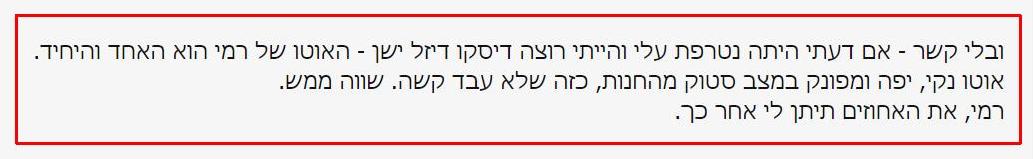 מצרף המלצה של דרור ברלי על האוטו, מלפני כמה ימים...