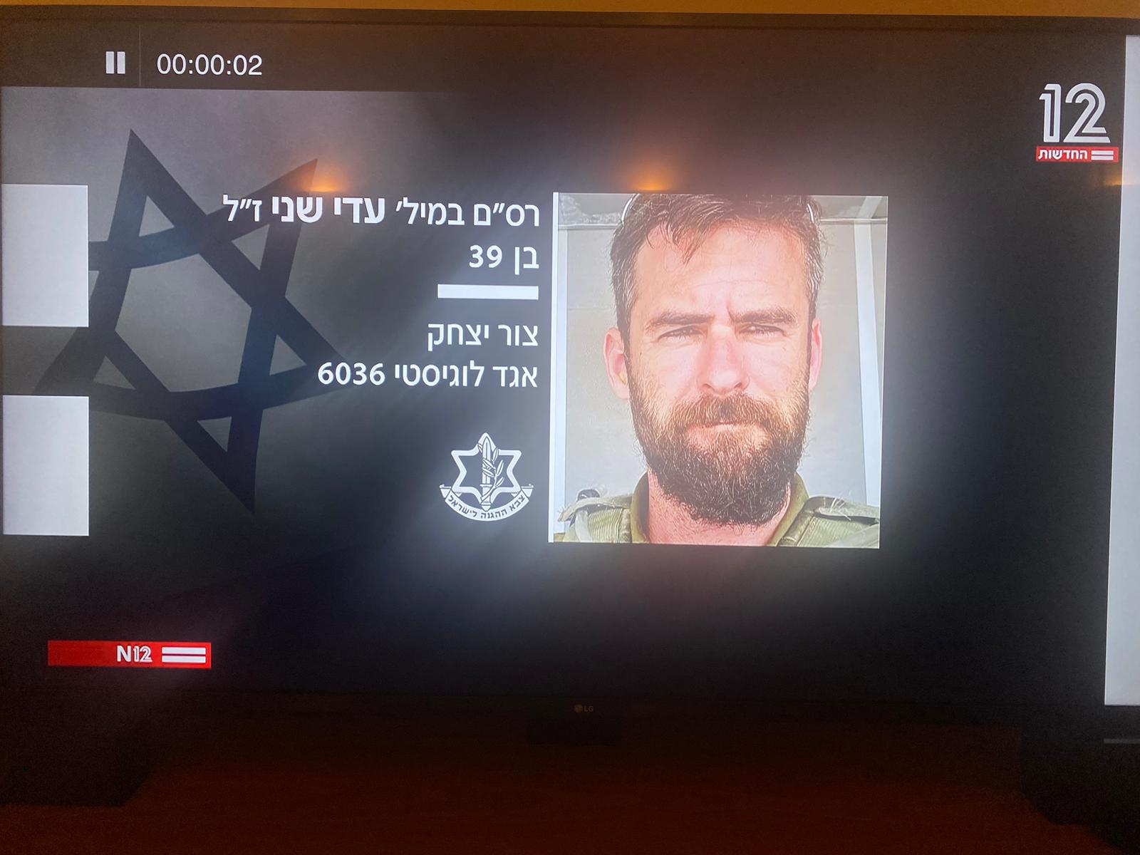 דובר צה"ל עדכן הערב (רביעי) על נפילתו של רב-סמל מתקדם במיל' עדי שני (39) מהיישוב צור יצחק בשרון במהלך קרב בצפון רצועת עזה. עדי היה לוחם פלוגת הסיור (פלס"ר) באגד לוגיסטי 6036. הוא יובא למנוחות מחר (היום 7.12.23) בשעה 16:00 בחלקה הצבאית בבית העלמין בכפר סבא. בכך עלה מניין לוחמי צה"ל שנהרגו מתחילת הקרבות ב-7 באוקטובר ל-412.
