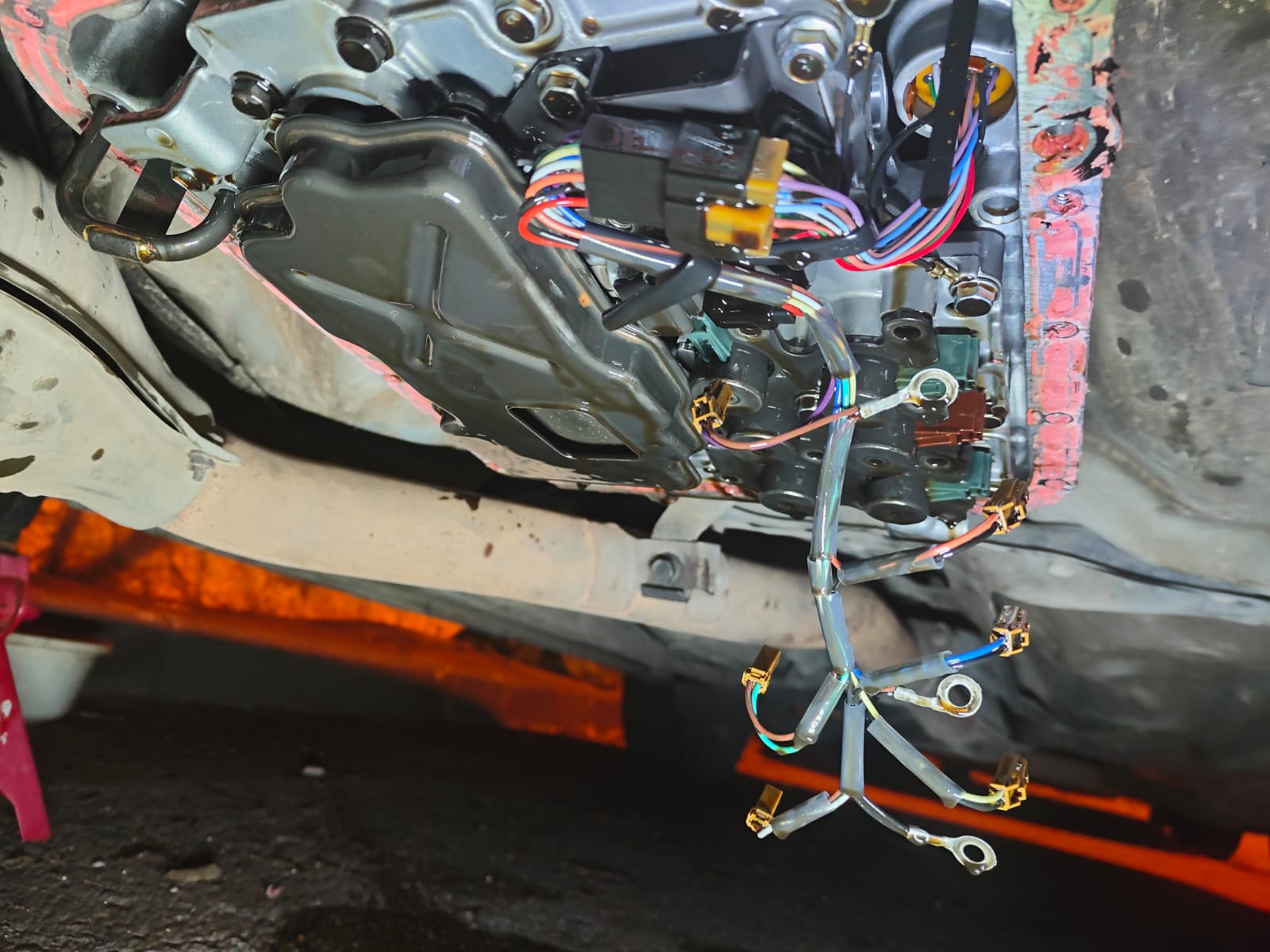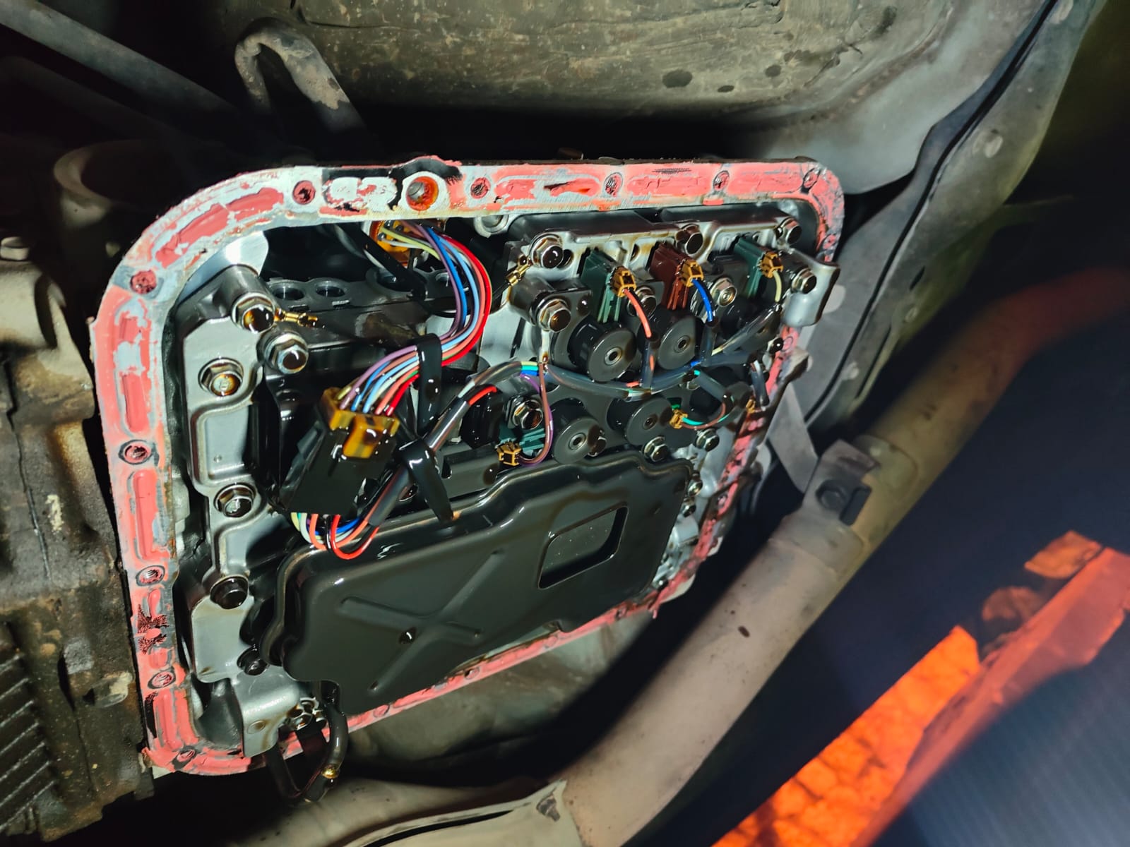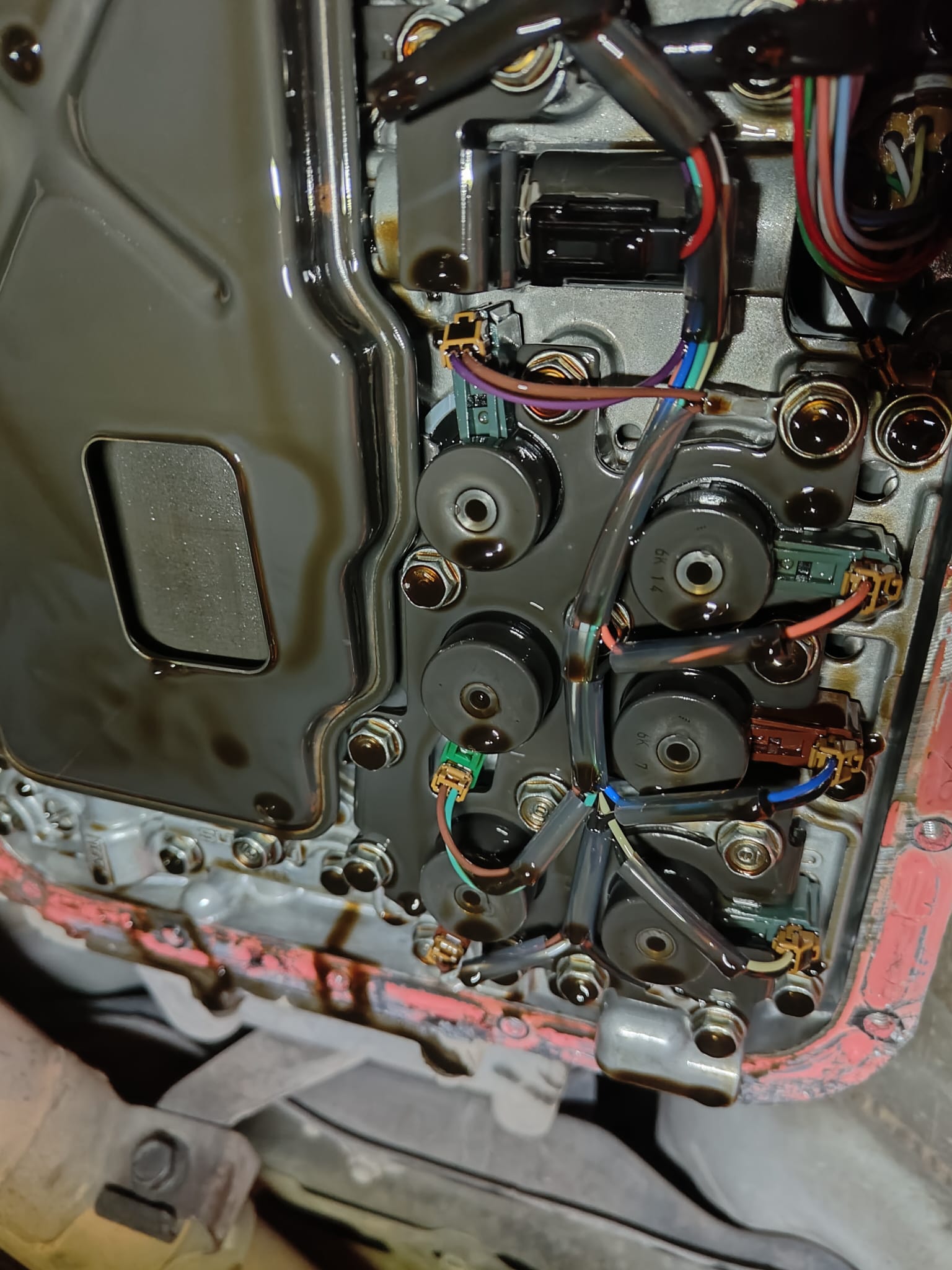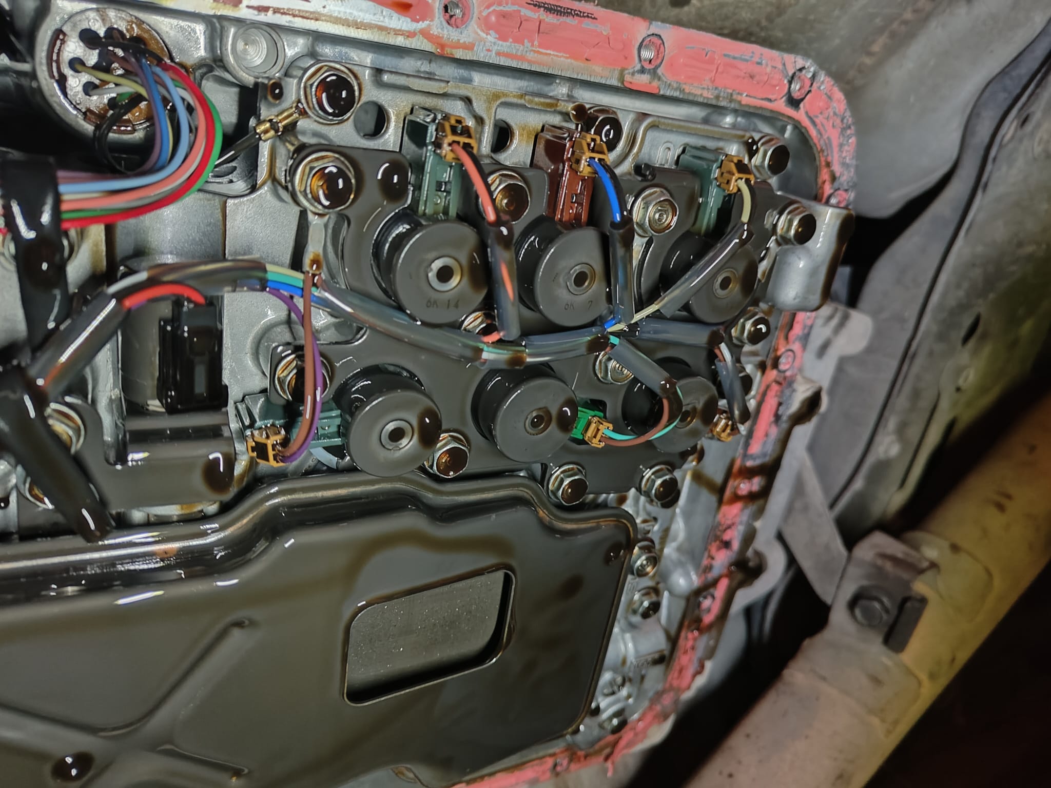 מרוקנים שמן גיר, פירוק קרטר גיר (עבודה די מעצבנת עם הסיליקון וכו'), ניתוק קונקטורים, פירוק הפלטה שמחזיקה את הסלונואידים והחלפה של הסלונואיד הבעייתי. למרות שיש לי את כולם החלטתי להחליף רק אחד שידעתי שהוא מקפיץ את התקלה. לאחר מכן סגירה של הכל ומילוי שמן גיר. התקלה כמובן נעלמה.