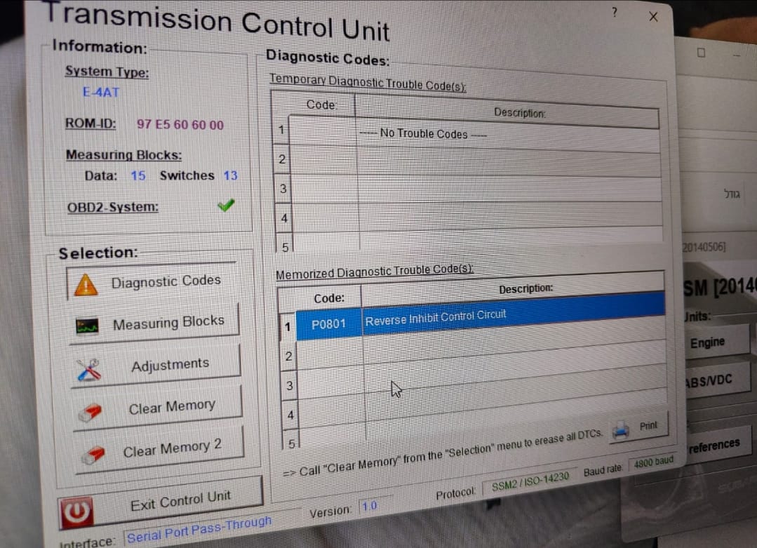 חיברתי לפטופ עם תוכנת FreeSSM (תוכנה חינמית מעולה לסריקה עד דור 3) והוצגה תקלת סלונואיד רוורס.
