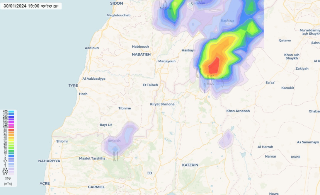 ע"פ התחזיות העדכניות לשעה זו, קיימת אפשרות למערכת שלג בגולן מקו 800 מטר ומעלה, החל ממחר, יום ג' 30/01/2024 בשעות הערב, ועד למחרת יום ד' 31/01/2024 בשעות הצהריים.