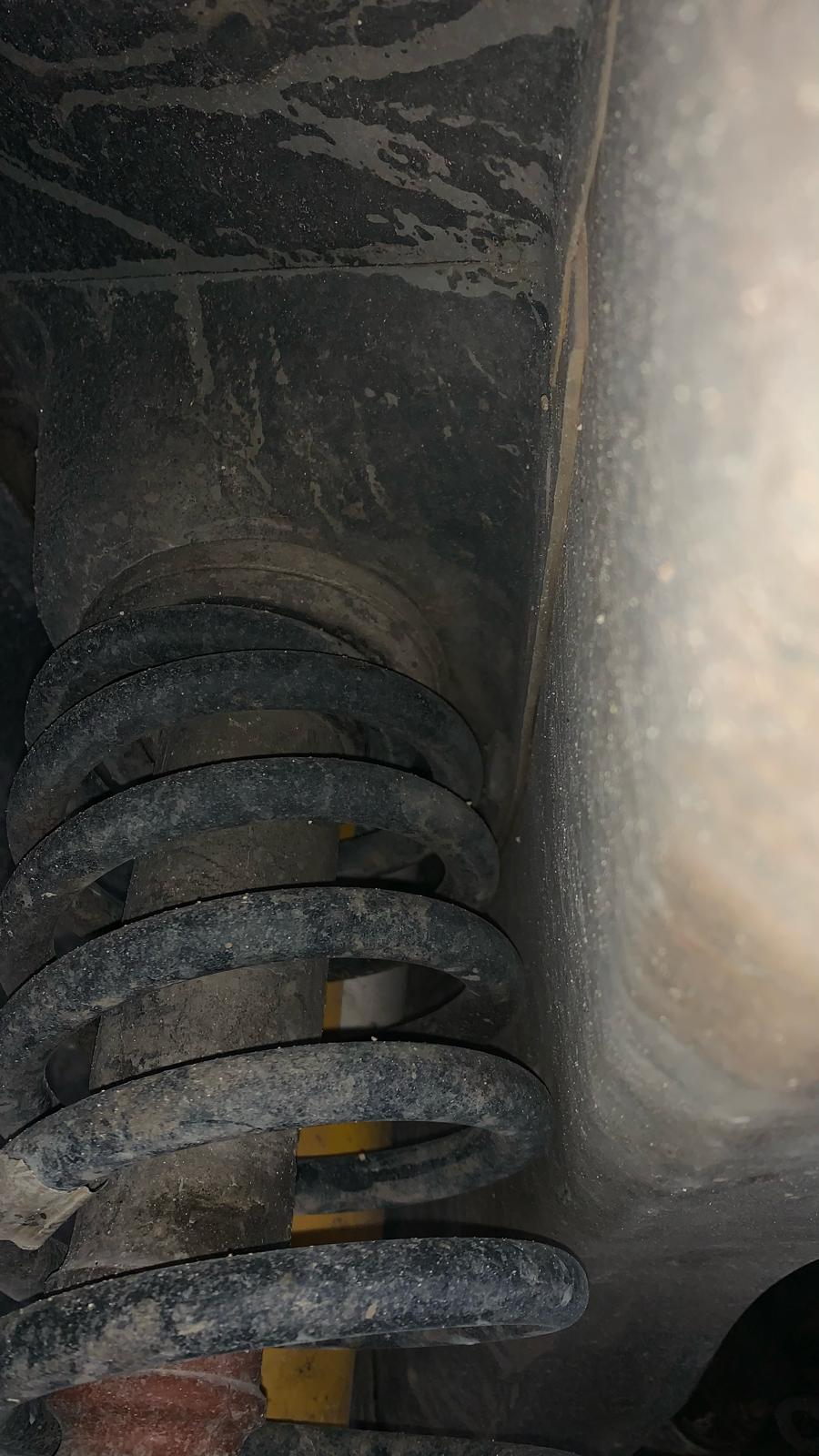 משהו נראה לא נכון - הכריכה הראשונה (מהצד של הבודי) נראית מעוכה הרבה יותר מאשר שאר הקפיץ ולכן הקפיץ מתקרב לשלדה ואף נוגע בה.