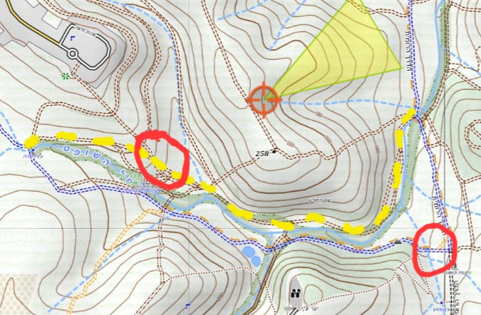 א. הירידה שצמודה לריחניה בורות וחריצים, אבל זה ירידה. בהמשך, המסלול שסימנת מתחבר לדרך הרומית בשלוש עליות שפרייבט לא יעלה. יותר קל להצמד לדופן השמאלית של הנחל, ולהתחבר חזרה לכחול בהמשך. הלאה, פחות בעייתי.