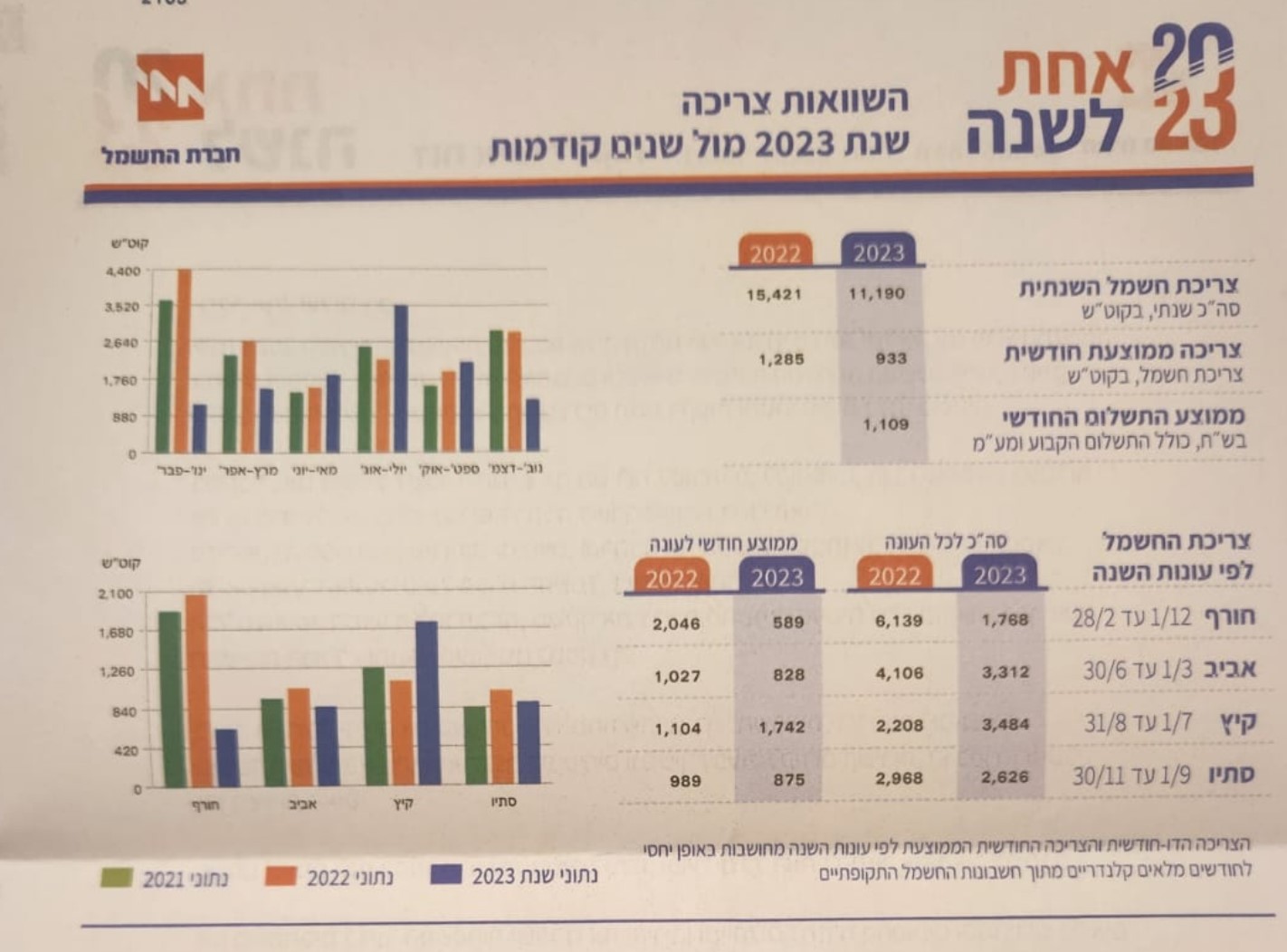 מצורפים סיכומי צריכת חשמל ביתית לשנים 21, 22, 23.
