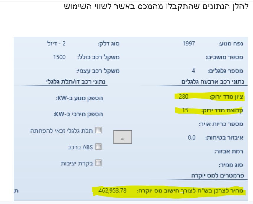 לפי תחשיבים שהמחשב עושה לרכב בבעלות דיפלומטית. אין לי מושג איך זה עובד, המחשב הוציא את זה לבד.