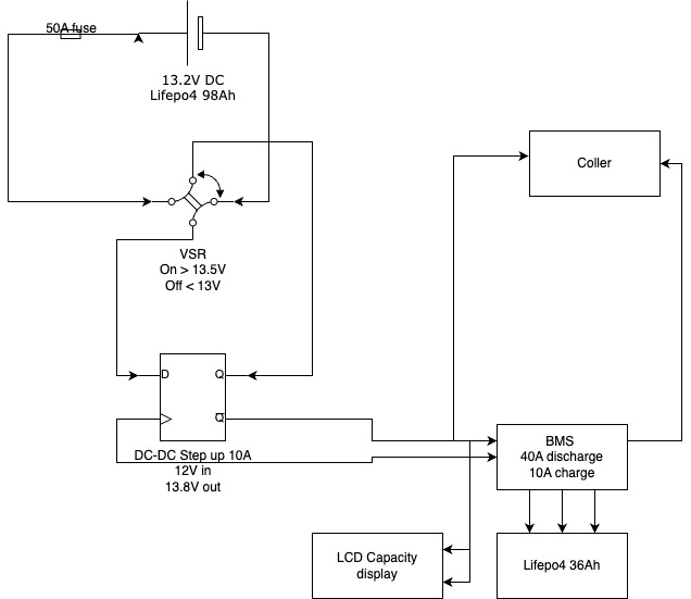 בתור התחלה, הvsr ששמת לא מתאים כשהמצבר הראשי הוא lfp. אתה רוצה שמתח הכיבוי שלו יהיה מעל 13.4 וולט, אחרת הוא יפרוק את המצבר הראשי.