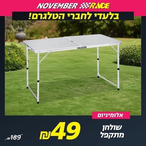 שולחן אלומיניום מתקפל באייס 49 ש"ח ליחידה, איסוף עצמי, אפשר לקנות עד 2 יחידות.