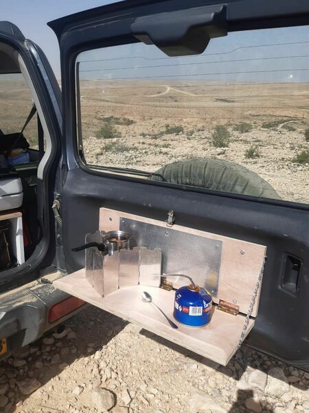 נבנה מדף לתא המטען, הורכב מגן טרנספר יד שנייה, הוחלפו צמיגים למקסיס 771, נבנה שולחן על הדלת האחורית, הורכבו אוזני חילוץ קדמיות, הורכב גגון, ובהשראת ג'יפולוג- נבנה מיכל מים ונחתכו קצות הטמבון.