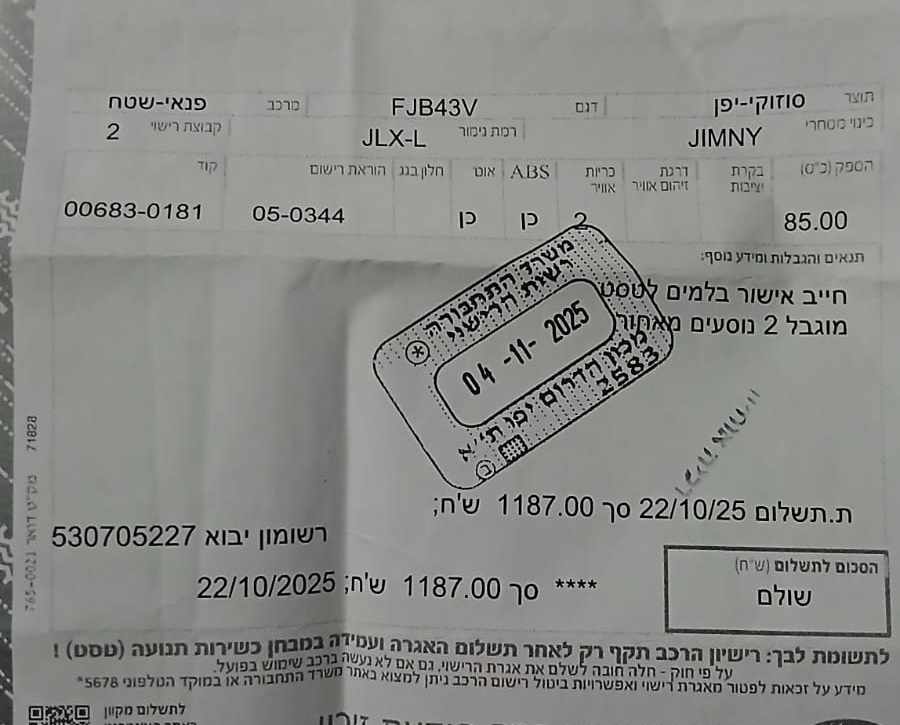 ביום שלישי יש לאוטו טסט (פעם אחרונה לשנה שלמה ועדיין ללא אישור מוסך).