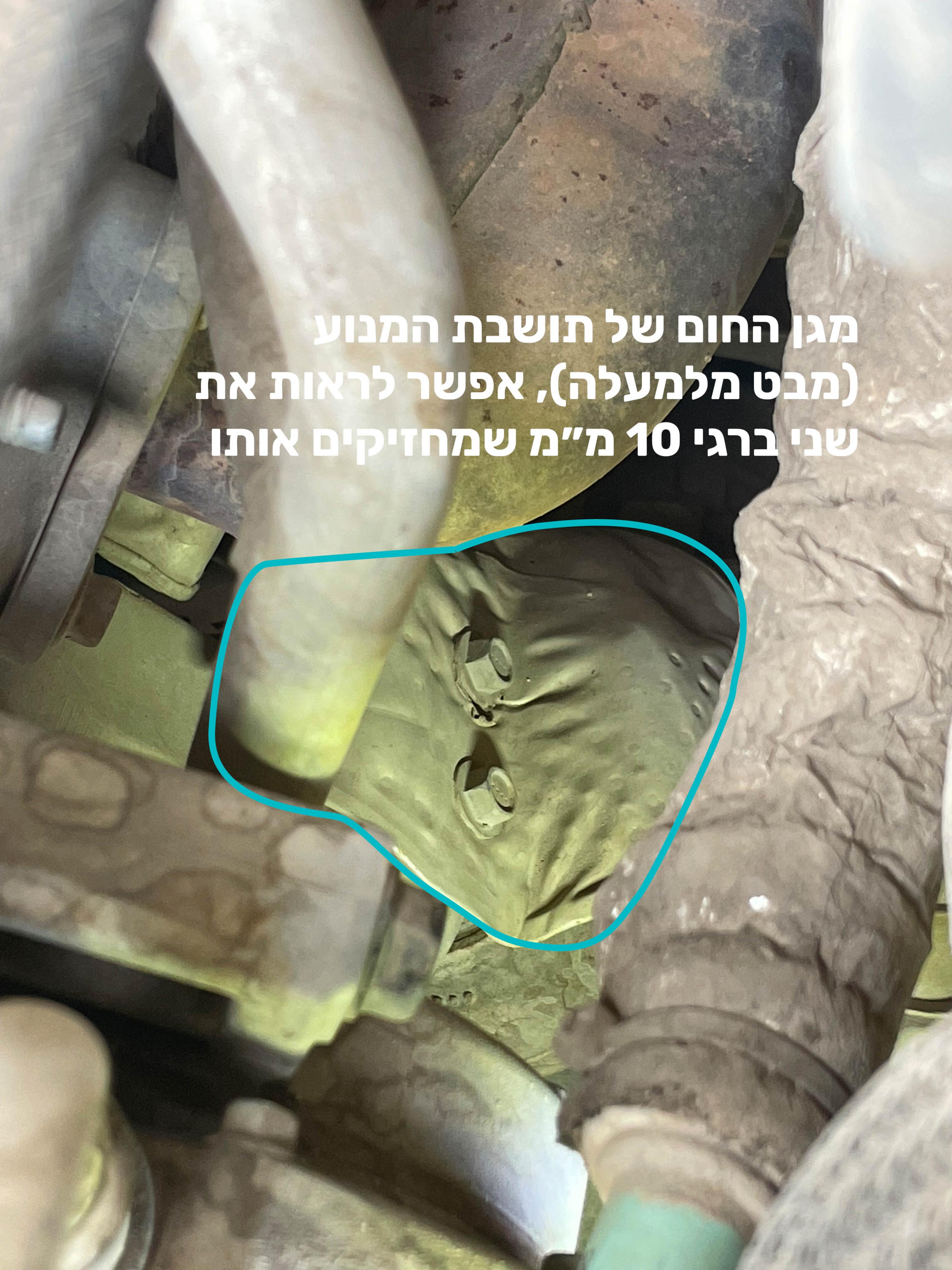 4. מורידים את שני הברגים של מגן החום (10 מ״מ)