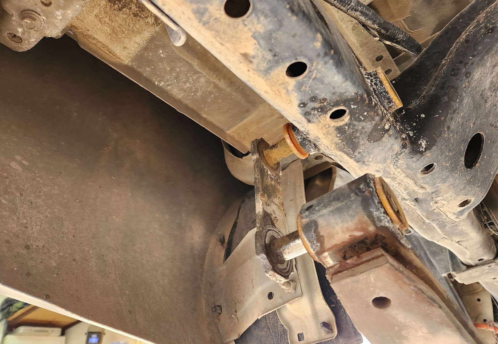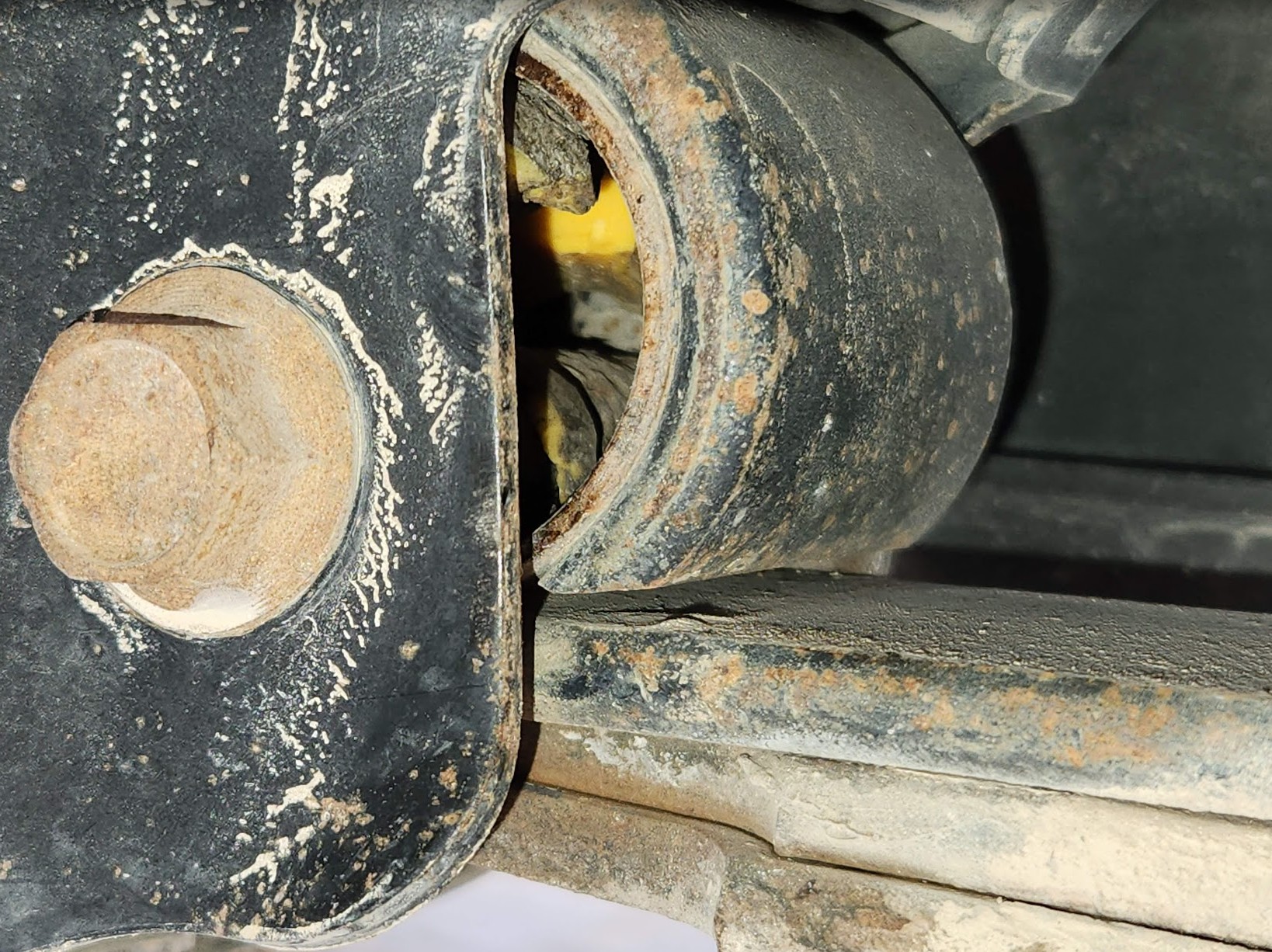 בתור דוגמא, מצרף תמונות של בושינגים פוליאוריטן בקפיץ עלה אחורי, ללא פינים מתגרזים, אחרי 5 שנים. הבושינג הגדול בעין הקדמית מפורק לחתיכות (כן באיזשהו שלב אפילו אני שמתי לב...). הבושינגים הקטנים בשאקלים במצב סביר לגמרי.