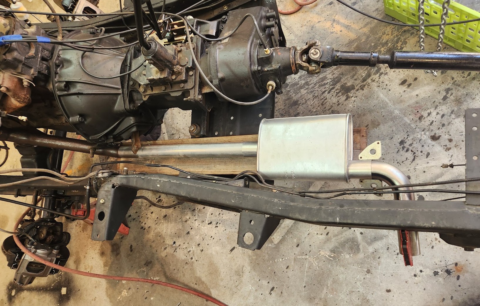 ג'יפ CJ-7 הנדון הגיע עם צנרת אגזוז לא מקורית, שרותכה בגסות מצינורות בקטרים שונים בהזדמנויות שונות והיתה די חלודה וגמורה. המשתיק, "ספידרקס" למי שזוכר מה זה, מרעיש כשמנענעים אותו מה שרומז שתוכו במצב דומה לאיך שהוא נראה. בג'יפ מהשנים האלו בכל מקרה יש דוד משתיק, אין ממיר/חיישני חמצן או שום דבר בסגנון.