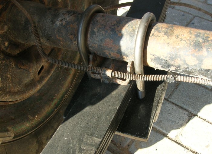 מחר אני אקח צינור 50מ"מ קוטר חיצוני (כי זה מה שיש לי) עם עובי דופן של 3.4 מ"מ (אם אני זוכר נכון) ואצור טבעות מסביב לחורים של הU BOLT. כמובן בגובה המינימאלי שהוא גובה האום.