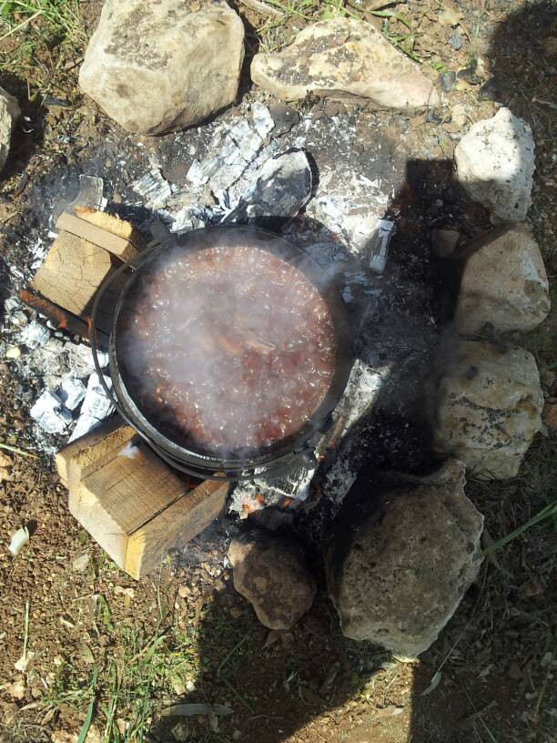נסגור המכסה וניתן לעסק לנגן, אנחנו מכוונים לבעבוע קליל. זה השלב לשבת סביב המדורה ולטחון אחד לשני את השכל. "פעם ב" נבדוק שהאש חמה, המפלס בגובה הנכון והכל תקין.