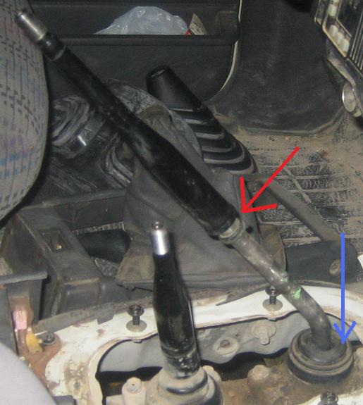 ידית ההילוכים כאילו מורכבת משני חלקים, שמרגישים כאילו יש חיבור גמיש מעט של גומי ביניהם. יש את החלק העבה, העליון, ואת החלק הדק, התחתון (כשהחץ האדום ששמתי מצביע על נקודת החיבור שלהם).
