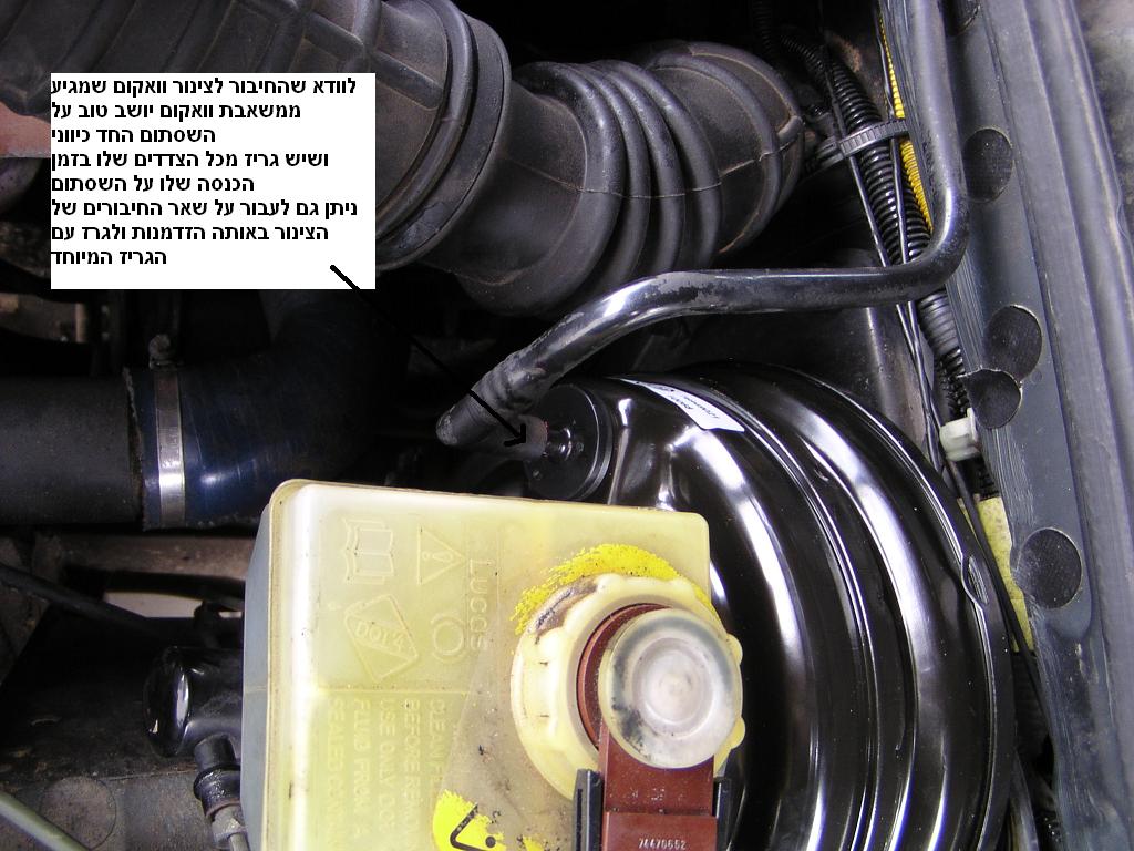 שמים גריז מיוחד על הצינור שניכנס מכיוון המשאבת וואקום , ותוקעים אותו חזק חזרה על השסתום החד כיווני. באותה הזדמנות אפשר לעבור על החיבורים של הצינור מהמשאבת וואקום ועד המגבר בלם , לחזק את הבאנדים ולהוסיף גריז מיוחד לאטימה בחיבורים בין הצינורות.
