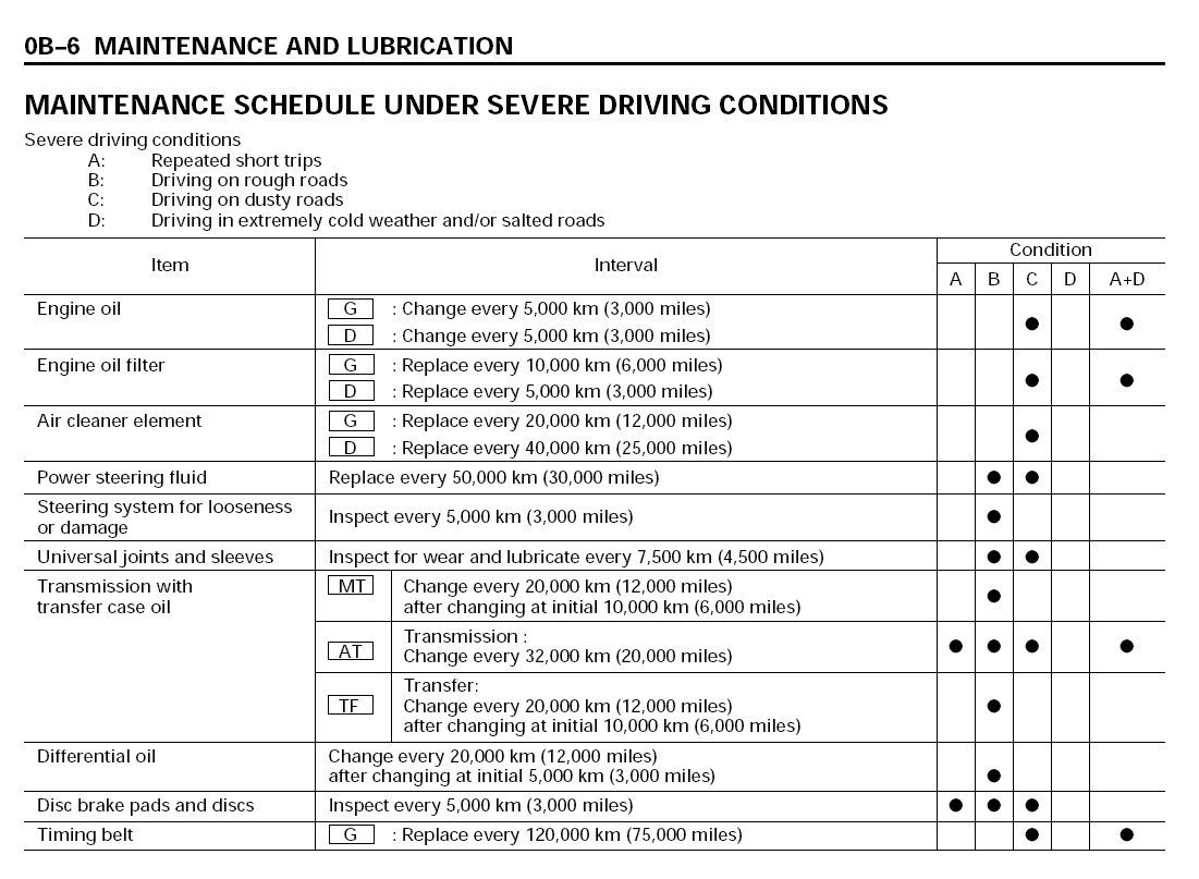 שימו לב שהיצרן ממליץ להחליף לפני הזמן (120Kק"מ) בתנאי שהרכב עובד "בתנאים מחמירים".