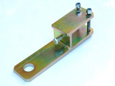 קח דיסק ותחתוך את הנקודה המקורית. נשארת עם פרופיל U שמרותך לשלדה. קח סרגל בעובי 4 מ"מ שיחזק את הצד התחתון של ה U. עם תבריגים M10 הברגה עדינה מתאימים במיקום לזוג הקדחים המקוריים. הוא צריך להיכנס מבחינת רוחב בתוך ה U. קח עוד סרגל, בדיוק ברוחב של ה U, ארוך ב 50 מ"מ מהU. כופף אותו ב30 מעלות, בצורה כזו שיהיה לו חלק ארוך טיפה פחות מהאורך של ה U, וחלק של 50 מ"מ מכופף כלפי מטה. קדח בו שלושה קדחים - בחלק הארוך שני קדחים של 11 מ"מ בדיוק במיקום של הקדחים המקוריים, ובחלק של ה 50 מ"מ, קדח של 13 מ"מ. עם אותו מקדח 11 מ"מ, תנקה את שני הקדחים המקוריים ב U.