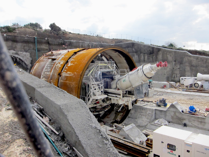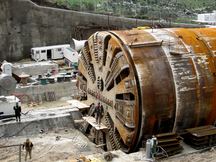 הרכבת מכונת הכרייה ליד לטרון. לאחר שסימה מנהרה אחת, מורכבת שנית לכרייה של המנהרה המקבילה.קובץ מצורף 68714קובץ מצורף 68715קובץ מצורף 68716קובץ מצורף 68717קובץ מצורף 68718