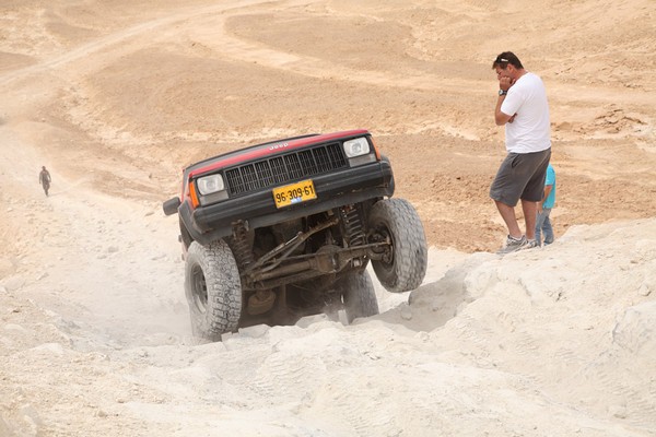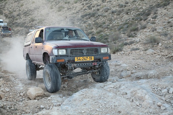 הגענו למעלה כאשר לשמחתינו היינו היחידים במעלה. עליתי ראשון, נעילה קדמית ואחורית והופ אני למעלה, השני עלה הטרופר שלא רצה כל כך להתאמץ וביקש משיכה עם הכננת, אחריו עלו הרכבים בזה אחר זה, כאשר הצ'ירוקי מתאמץ יותר ללא נעילות, אבל עלה "כמו גדול" עם הכוונה נכונה מהקרקע. לפני הסיום ראינו מגיע טויוטה 73 בודד, חיכינו שיעלה אבל הוא הצטרך משיכה במעלה, עזרנו לו לעלות (אחוות ה 73) וצירפנו אותו לכוחותינו עד לעצירה הבאה.