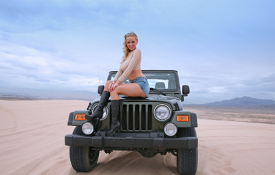 מולנו מגיחה קבוצה של כחמישה סיקסים פתוחים , הם מתחילים לחתוך את קירות הדיונות שמשני הצדדים בקלילות מרשימה ... "שאנסה גם ? " אני שואל, ושלוש שניות אח"כ אנחנו שקועים למרגלות הדיונה באופן מביך ..., שיירת הסיקסים הפתוחים חולפת על פנינו והנהגים מביטים בנו ממרומי הסיקסים במבט ספק מרחם ספק מזלזל... את השיירה מובילה בחורה - נהגת ! לא בטוח שהיא הובילה, אבל ללא ספק היא הייתה שם - שיער בלונדיני ארוך ובנדנה אדומה - הלסתות שלנו נשמטות ....