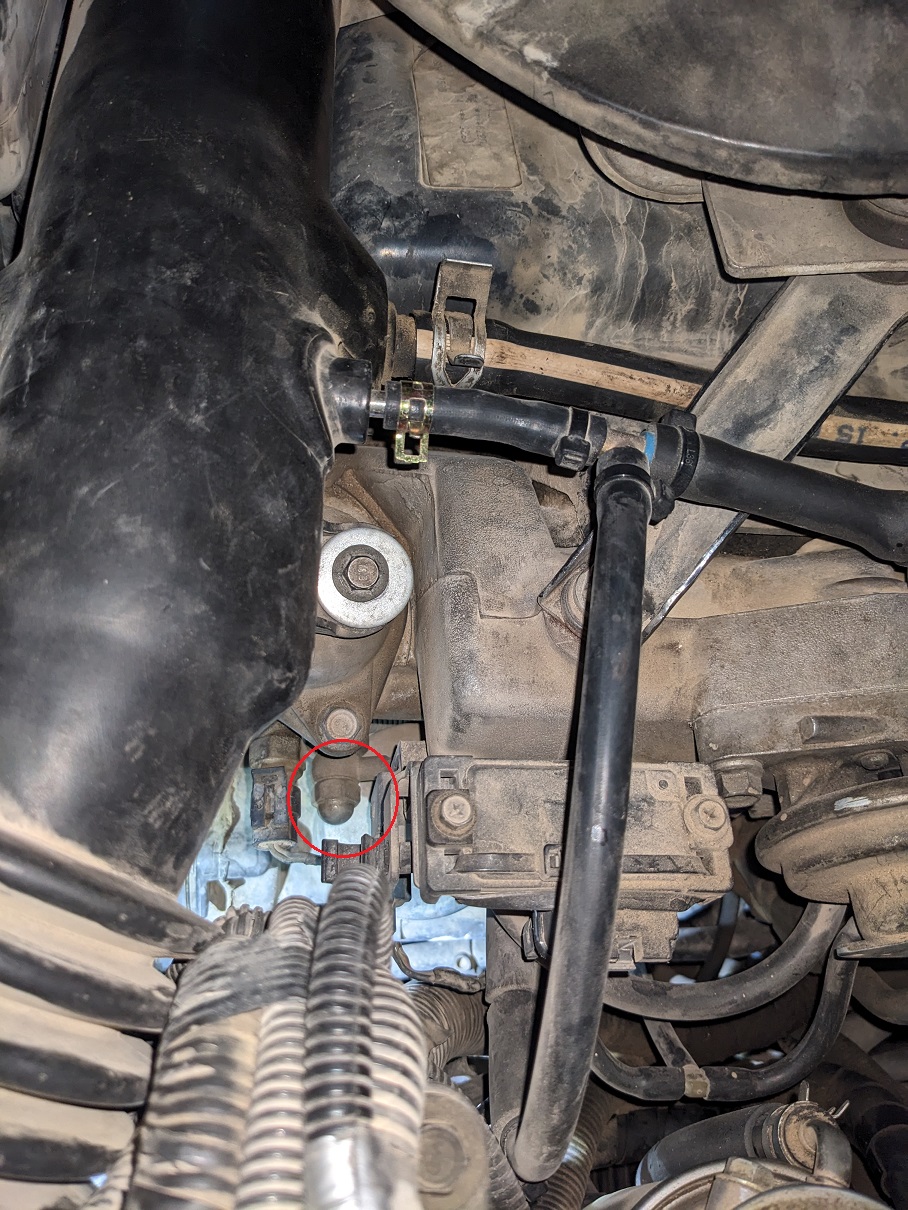 מהצד של הנהג, מתחת לEGR, שמאלה (לכיוון קדימה), יש צינור מתכת שמסתיים באום כיפה.