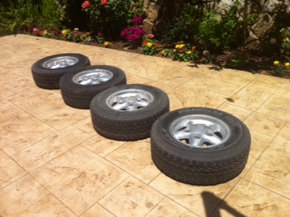 למכירה 4 צמיגי goodyear wrangler 235x70x16 במצב טוב על ג'נטים מגנזיום מתאימים לדיסקברי 1 ולדיפנדר.