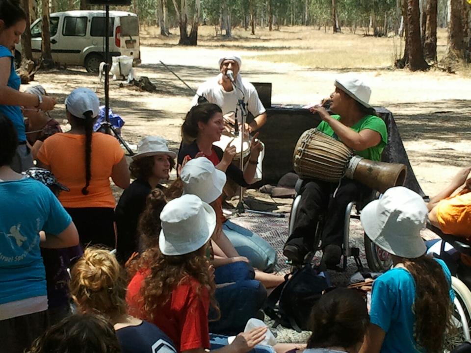 עצירה בנק' עצירה הכוללת מעגל מתופפים ופריסה של שתיה וכיבוד