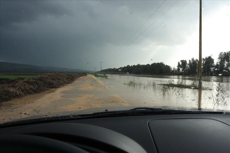 בדרך, צומת תורען מוצפת- תעלות הניקוז לאורך הכביש לא עמדו בספיקה והיה נראה כאילו הירדן עבר דירה...