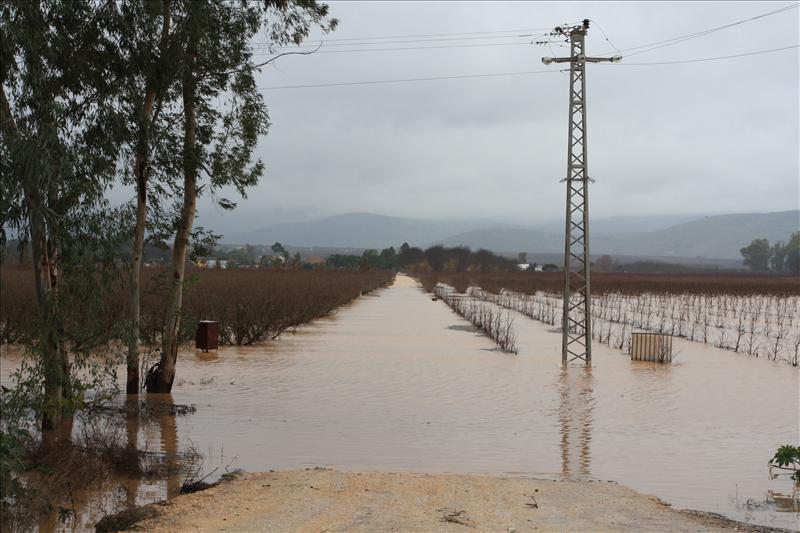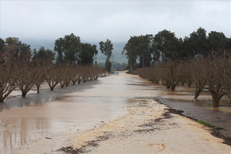 תעלת הירדן עלתה על גדותיה והחלה להציף את השדות והמטעים באיזור יסוד המעלה.