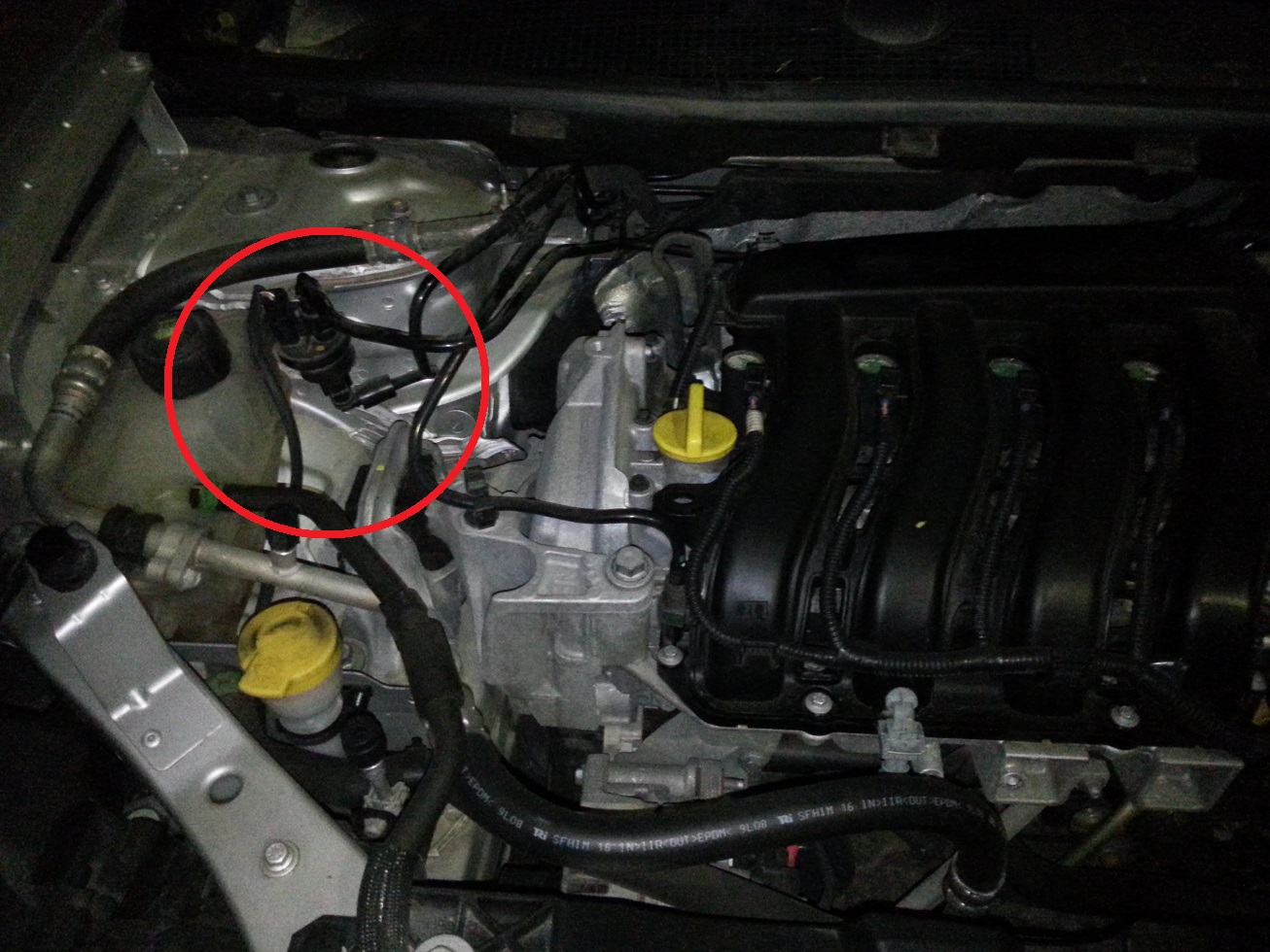 לחבר טוב יש רנו פלואנס מנוע 1600 שנת 2010, ונדלקה לו נורת check engine והופיעו לו על הצג "check injection" מלווה ברעש של גריסה מתכתית בהתנעה, לאחר כיבוי המנוע ופתיחת מכסה המנוע - שמיעה של תקתוק חשמלי (נשמע בסרטון המצורף בתקריב על החלק המתקתק).