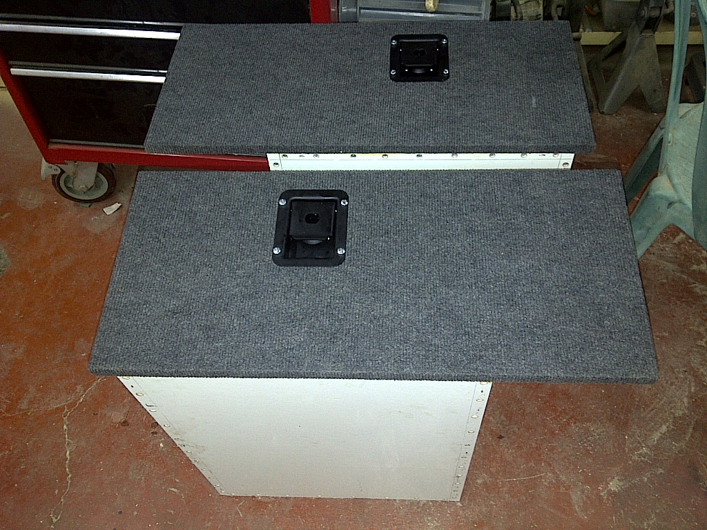 הרצפה המדומה, החלטתי לחתוך את הדיקט בדיוק איפה שהמסגרת מסתיימת ולשים 2 צירים בכל צד, כך שארצה להוציא את היחידה, רק אקפל את הצדדים... והיחידה בחוץ, וכך עשיתי, אבל פתאום מה יחזיק את הצדדים המתקפלים ישר וייתן לי גם להעמיס אליהם מבלי שיקרסו מטה?... הוספתי למסגרת 3 פרופילים שעליהם הדופן נשענת וזה עובד פיקס.
