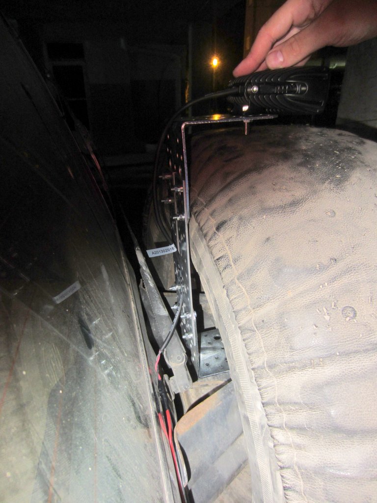 מרווח מעל הצמיג סביר, כנראה שאבחר בבורג קצר יותר מזה שהגיע עם הפנס, בתמונה זה תרום חיבור למתקן גלגל אפשר לראות שיש מקום לווישיר לבצע את פעולתו, יכול להיות שאהפוך את כיוון הברגים בחלק התחתון כדי לאפשר מרחק מקסימלי מהזרוע