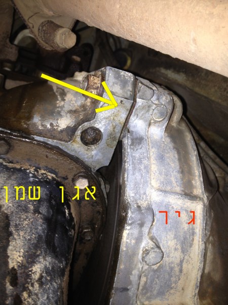 יש לי נזילת שמן (לא מהאגן שמן כי שם כבר שמתי סיליקון) ראו בתמונה (מסומן בחץ) בין האגן שמן לבין הגיר בדיוק בנקודה שמראה החץ שם יש נזילה