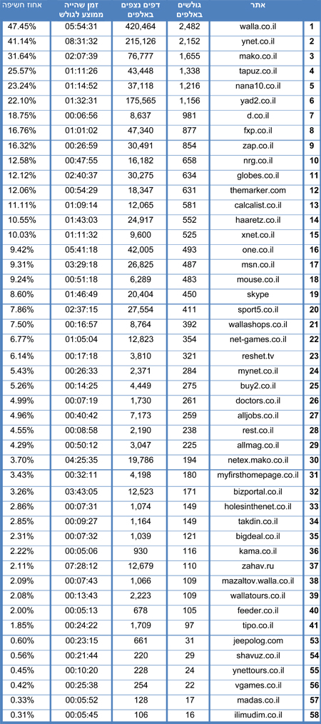 התוצאות הינם שכלול של מס' הגולשים באתר, מס' הדפים הנצפים, זמן שהיה וכו'
