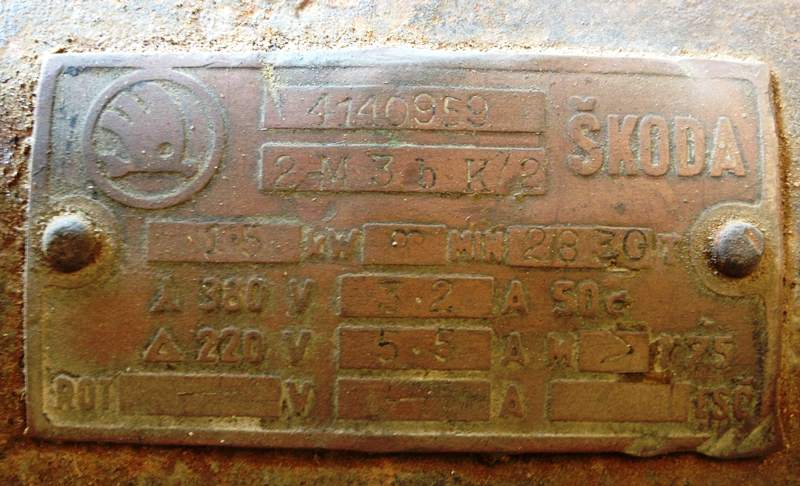 המכונה עם מנוע חשמלי תלת פאזי תוצרת סקודה , הפעלתי אותה בזמנו ואחרי 20 שנה שהיא עמדה , היא עבדה מיד ועשתה את מה שהיא יודעת לעשות, ( אוי הצליל הזה של ההקצעה ;) ) אין ספק שהיא צריכה ניקוי ושיפוץ קליל , גירוז ,החלפת רצועה וכו' .