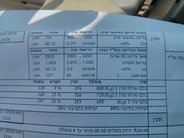 אשמח האם תוכלו להציץ בתוצאות הבדיקה המצ"ב (נעשו לדעתי במהלך הרישוי) ולראות האם התוצאות תקינות
