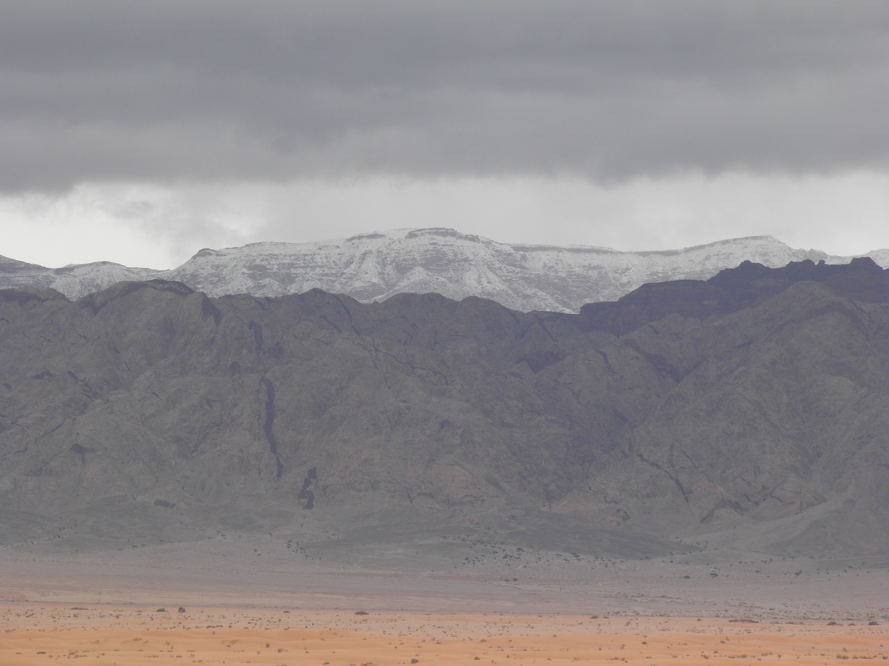 התחיל ממש לפני שעה קלה, פסגות ההרים שמעל לעיר עקבה מושלגות.