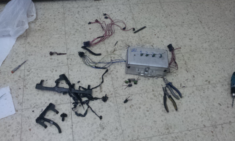 לקחתי קופסת חיבורים וחיווטתי הכל לתוכה כשלכל מזרק יש מפסק on/off בעצם מדמה הוצאת פלג במנוע בנזין, או כמו כיבוי שניתן לבצע בטק2 לכל מזרק בניפרד, כל שינוי בעבודת המנוע מצביע על מזרק שכיביתי, כיבוי מזרק שלא משפיע על עבודת המנוע בעצם מצביע על מזרק תקול.