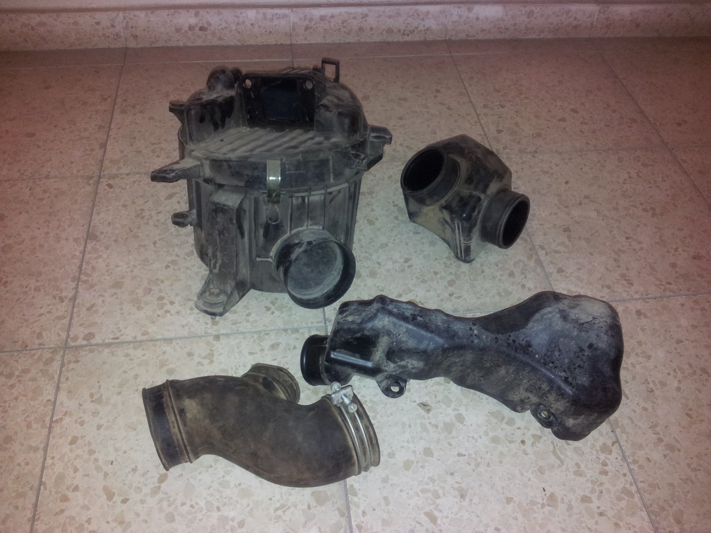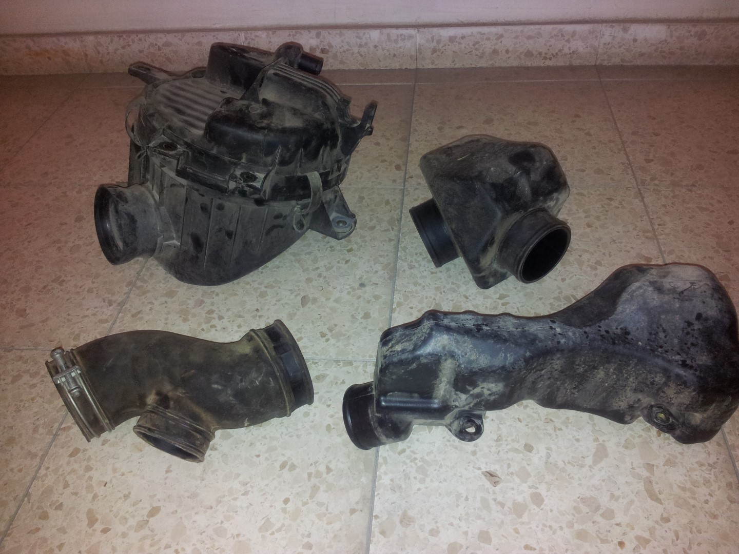 בית מסנן אוויר, שלם ותקין, עם הצנרת עד המנוע.