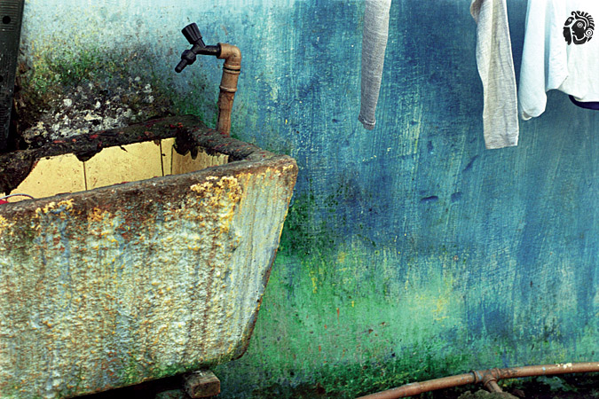 במקום לצלם באופן מאולץ את כל זירת האירוע, בחרתי להתמקד בפרט או מספר פרטים. השילוב של חצאי אלמנטים מאתגר יותר את העין ומשאיר את הצופה בזירה יותר זמן. יש לנו חצי כיור, חצי צינור מים, חצאי פרטי כביסה ומשהו שנראה כמו קיר בית או חצר. דרך אגב, תמונה זו נבחרה לשער מגזין עיצוב דיגיטלי מסיבות שהוזכרו לעייל.
