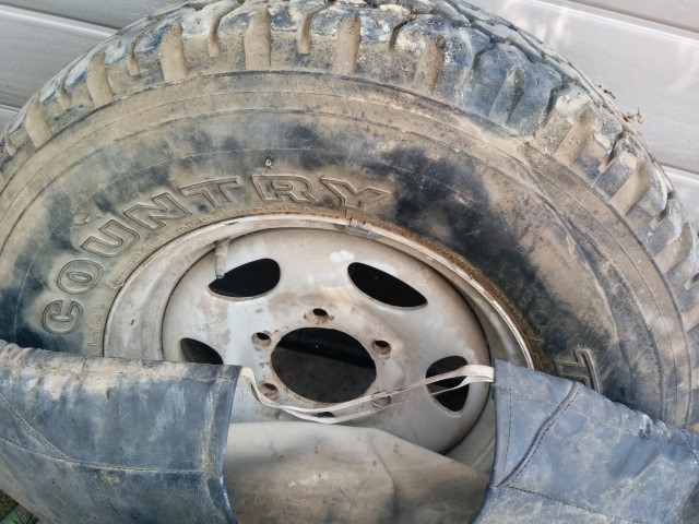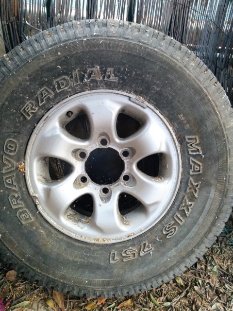 1. גלגל ספייר 235/75/15 של פגרו 1999 (שכב הרבה זמן בגינה, מצב סביר) - 100 ש"ח