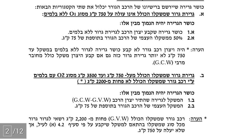 ועוד משהו, קח בחשבון שרישיון ב יכול לגרור עד 1.5 טון גם אם לרכב הגורר מותר לגרור יותר.
