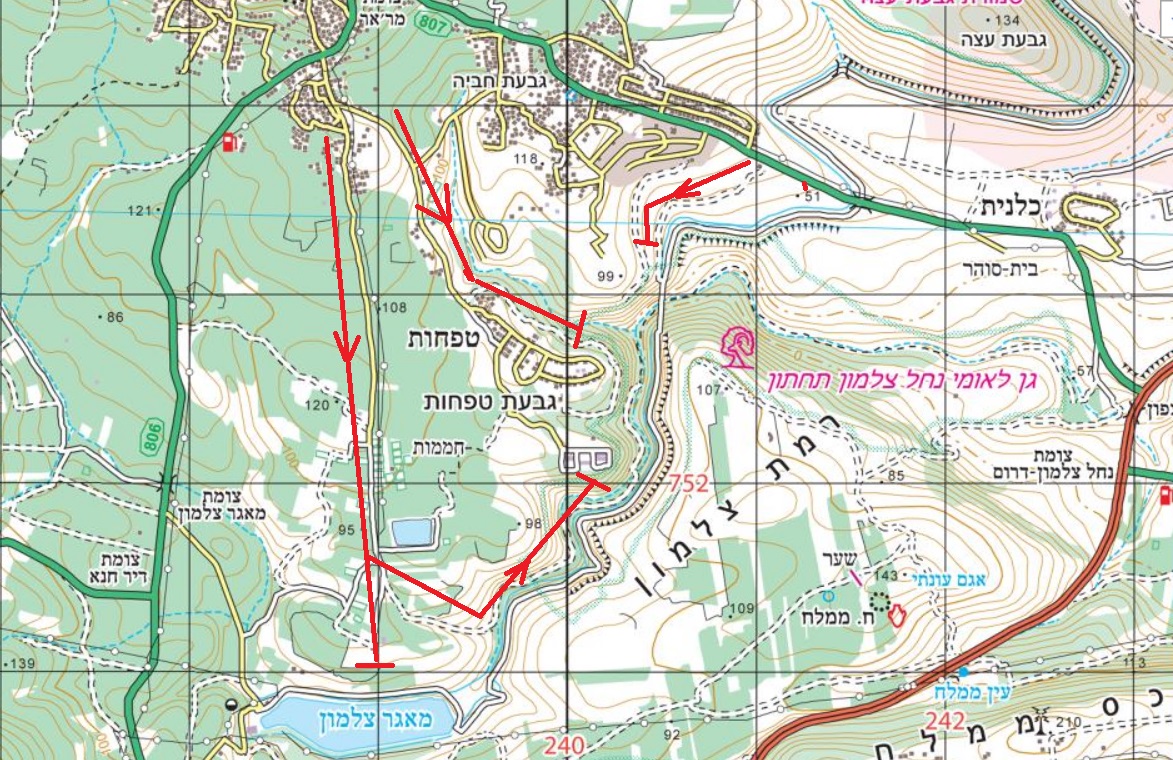 כאמור נסינו להגיע לאזור גיחון נחל צלמון עם הרכב, מבט במפה לא בישר טובות , אבל מנסיון , תמיד יש שבילים לא מסומנים או שהמפה לא מעודכנת.