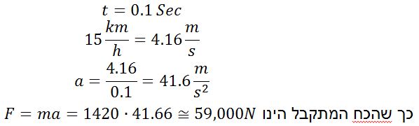 לאחר קריאה בנושא מצאנו כי פרק זמן ריאלי עבור תאונה בכ-15 קמ"ש (מהירות סבירה לטיול בשטח קשה) הינו 0.1 שניות.