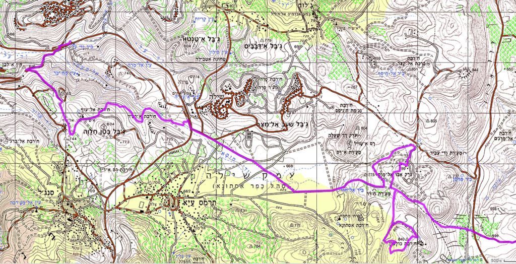 נתחיל את המסלול בטיפוס בכביש המוביל לשכונה של עלי הנקראת גבעת הרוא"ה, שנמצאת בין כביש 60 הנוכחי לבין כביש 60 הישן. ניסע בשביל לעבר חר' אל'עוף ונקבל הסבר על המקום ועל הצעת הזיהוי למקומו של פסל מיכה. נרד בשביל לעבר נחל שילה וניסע בו בין הכרמים המתחדשים אל עמק שילה. נחצה את עמק שילה לאורכו ובצידו המזרחי נטפס בשבילים לכיוון גבעת עדי עד, למעוניינים נתפלל שם תפילת שחרית בבית הכנסת. אח"כ נשמע קצת מפי אחד התושבים במקום על החקלאות וההתיישבות בסביבה. נמשיך לטיפוס על רכס כולצון, נעצור מתחת לעצי אורן הצנובר הענקיים, שם נזכה לתצפית מדהימה ונשמע הסבר על חר' כולצון הסמוכה ומדבר שומרון הפרוס לפנינו מזרחה. נגלוש בערוץ קטן ויפה ונחצה את דרך אלון לעבר חרבת ג'בעית לאחריה נרד לטעימה מאחד מערוציו היפים של מדבר שומרון, נחצה אותו לכיוון דרום ונגלוש חזרה אל דרך אלון ומשם נמשיך לטיפוס אל קובת א-נג'מה שם נערוך תצפית והסברים, לאחר מכן נגלוש בשביל אתגרי לעבר העוג'א שם נסיים הטיול.