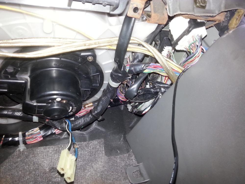 פירקתי את המחבר מהמפוח (ותוקן אילתור שמתישהו מישהו עשה על החוט שלו), ואת המחבר ממודול המהירויות שגם הוא תחת תא הכפפות בצד שיותר קרוב לקונסולה המרכזית
