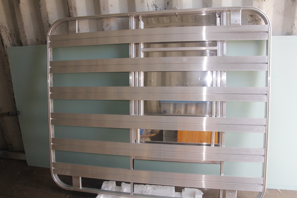 עם שולחן אינטגרלי מושחל בגג בנוי מרגלי אלומיניום ופלטת נירוסטה.